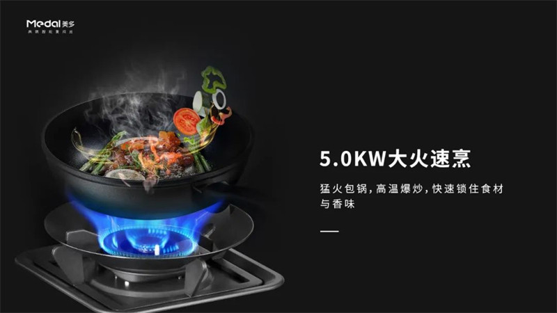 美多语音分蒸烤集成灶的超能力还远不止这些,为你保温的置物台,5.0kW大火力兼一级能效的灶具,整机多重安全防护保护全家。